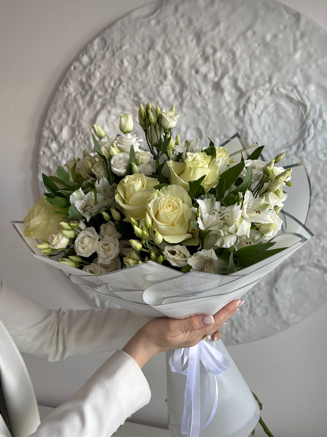 Розы одноголовые - 6 шт. Эустома - 4 шт. Альстромерии -3 шт. Упаковка-1 шт.