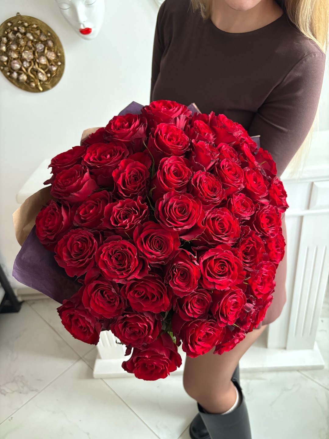 Розы красные Эквадор 60 см. -55 шт. Упаковка - 1шт.