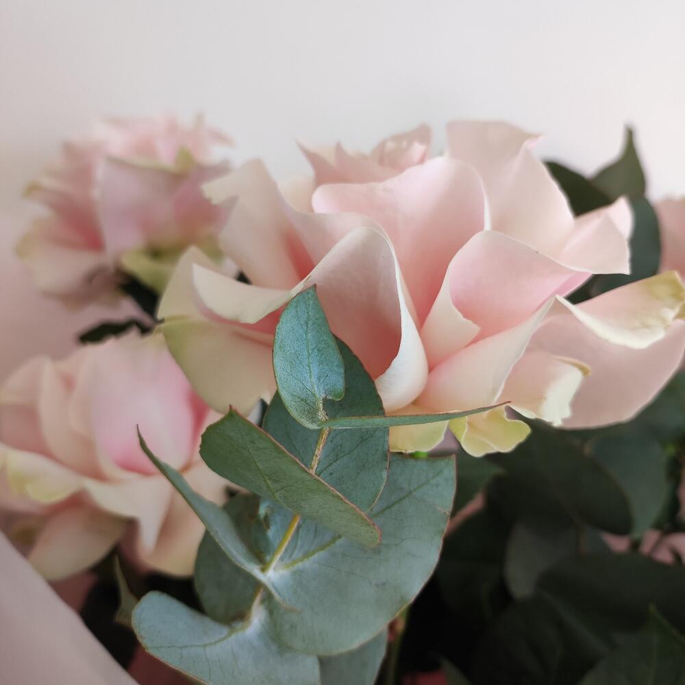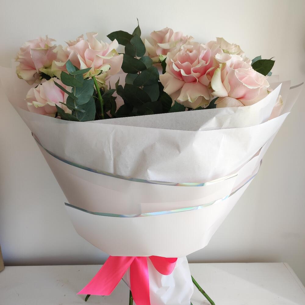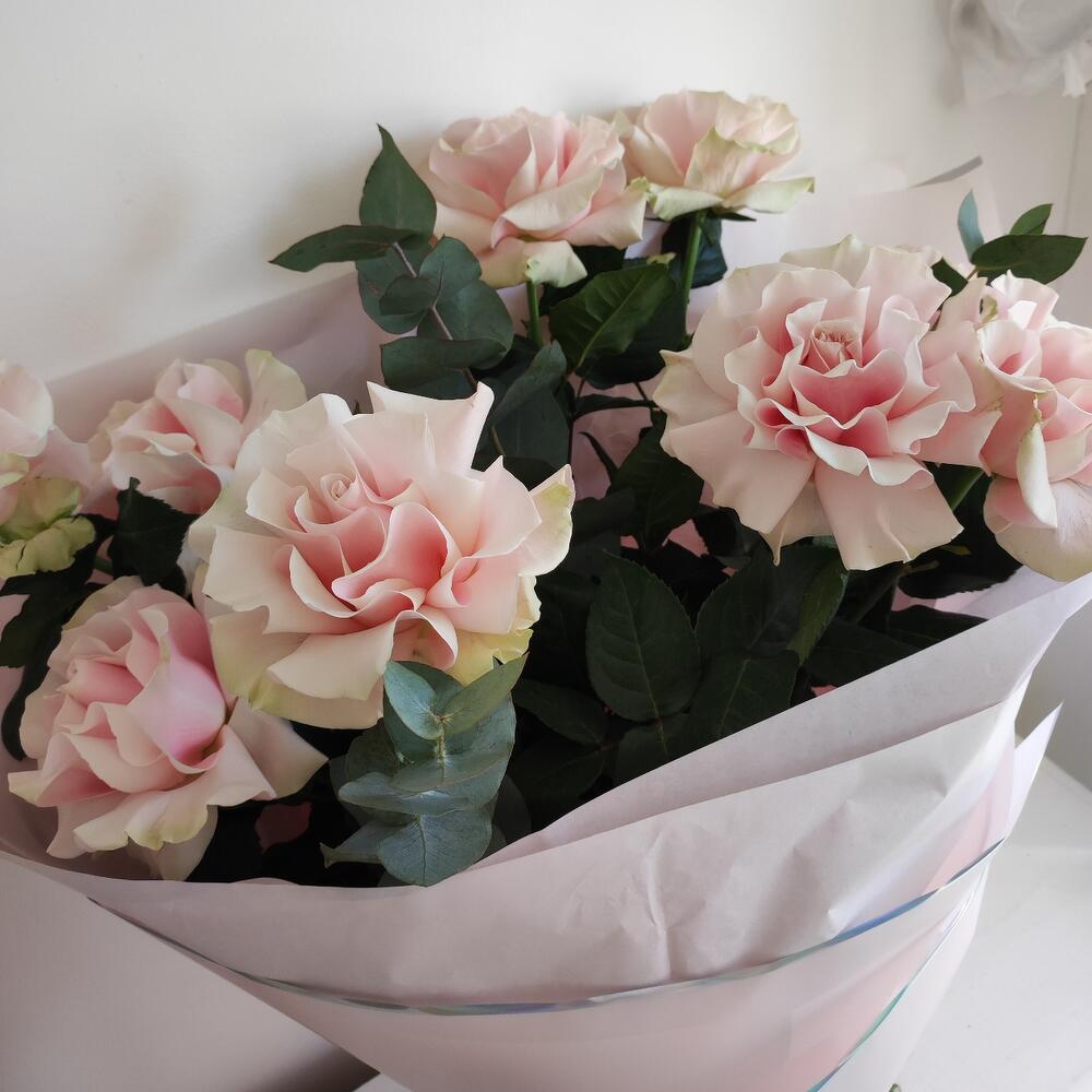 Розы французские - 7 шт Эвкалипт - 6 веток Упаковка