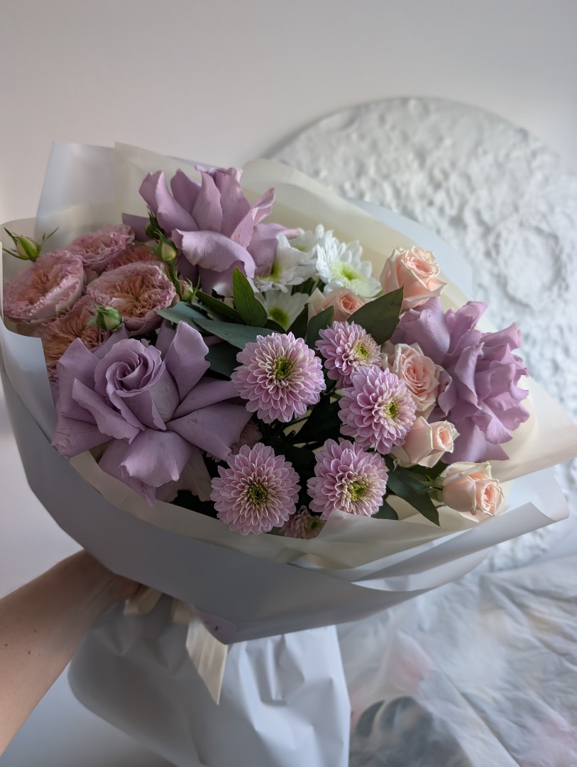 Букет с лавандовыми розами