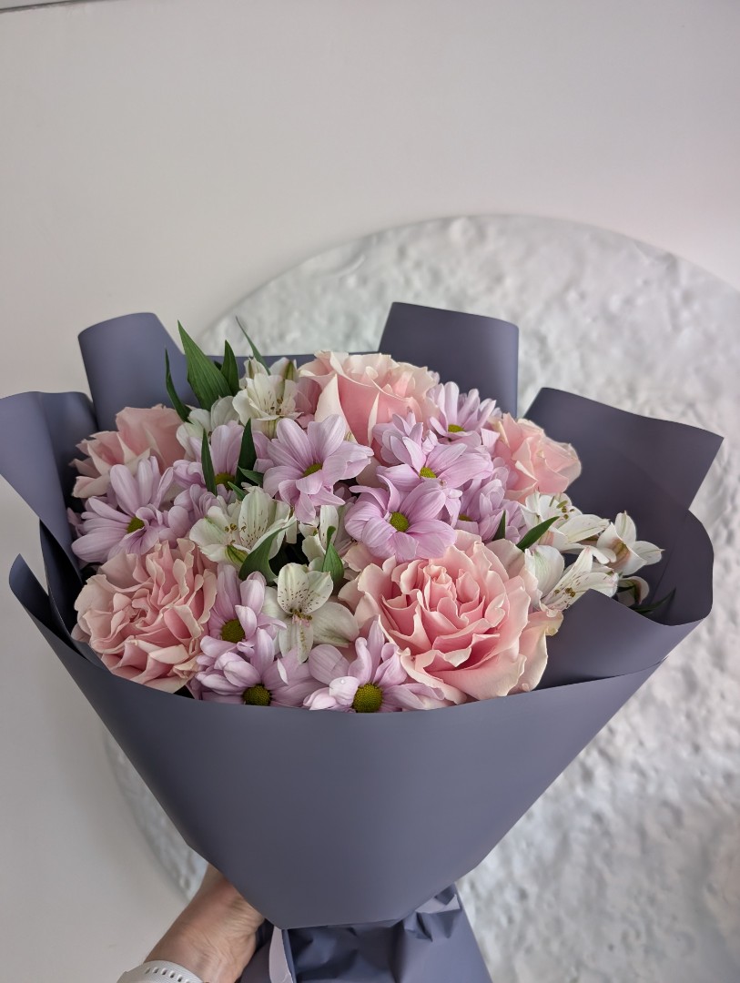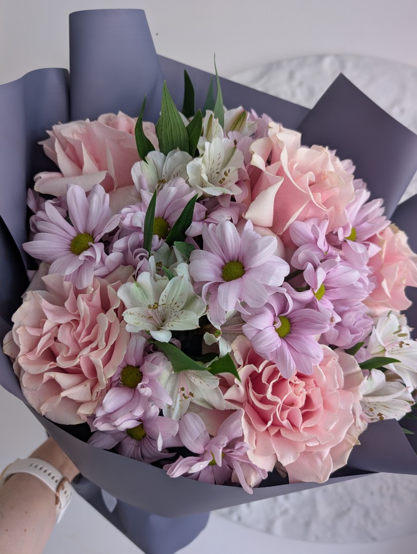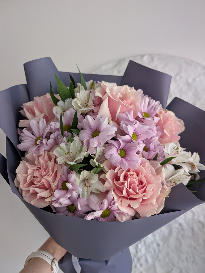Роза - 5 шт Альстромерия - 3 шт. Хризантема кустовая - 4 шт.