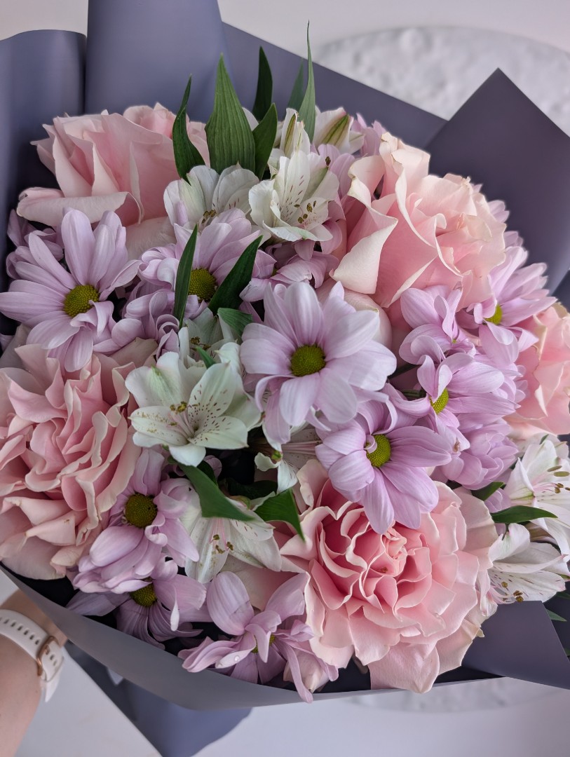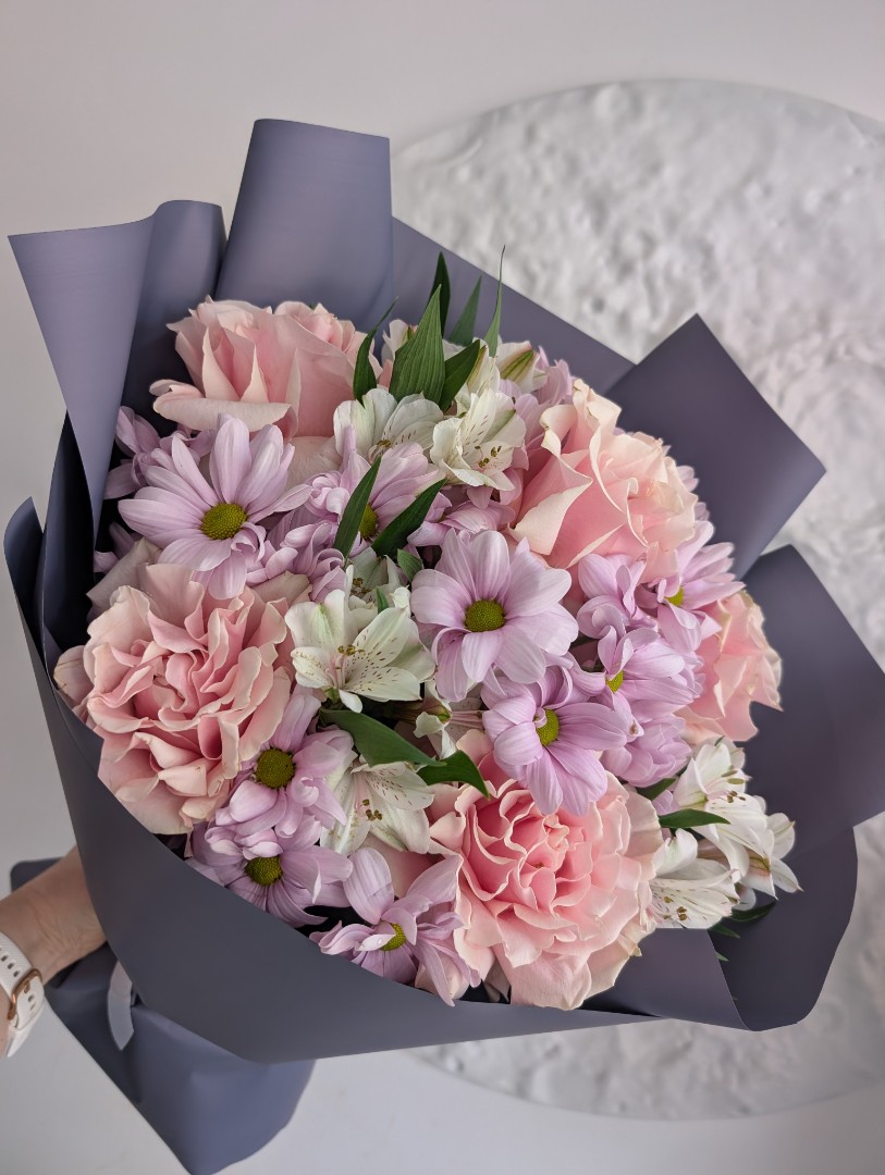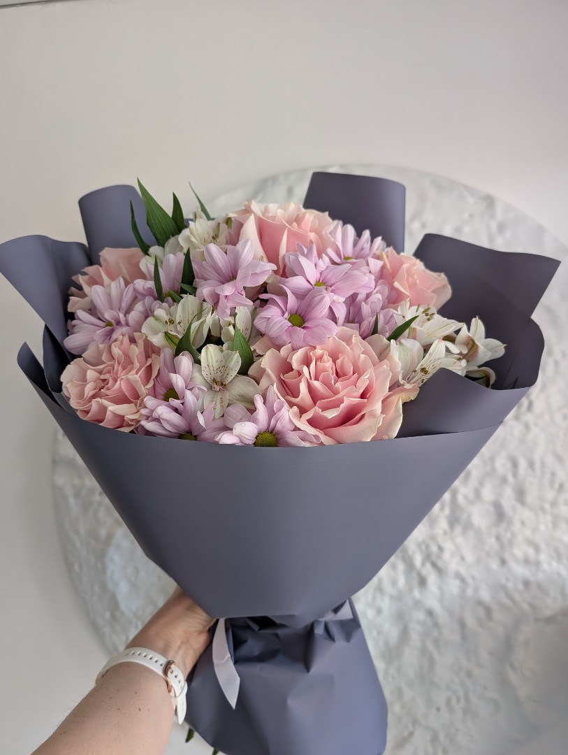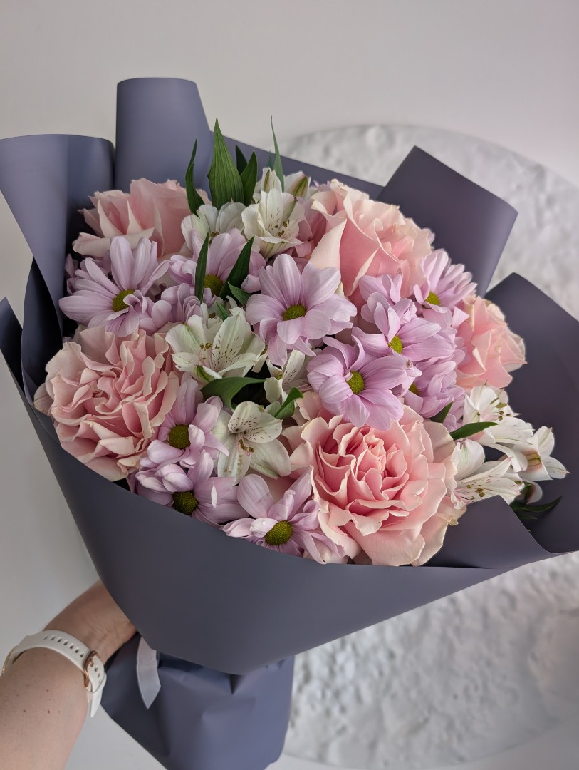 Роза - 5 шт Альстромерия - 3 шт. Хризантема кустовая - 4 шт.