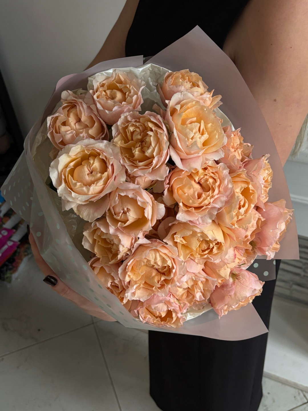 Разместите букет в прохладном месте с доступом свежего воздуха, вдали от солнца, сквозняков, отопительных приборов, фруктов и овощей.