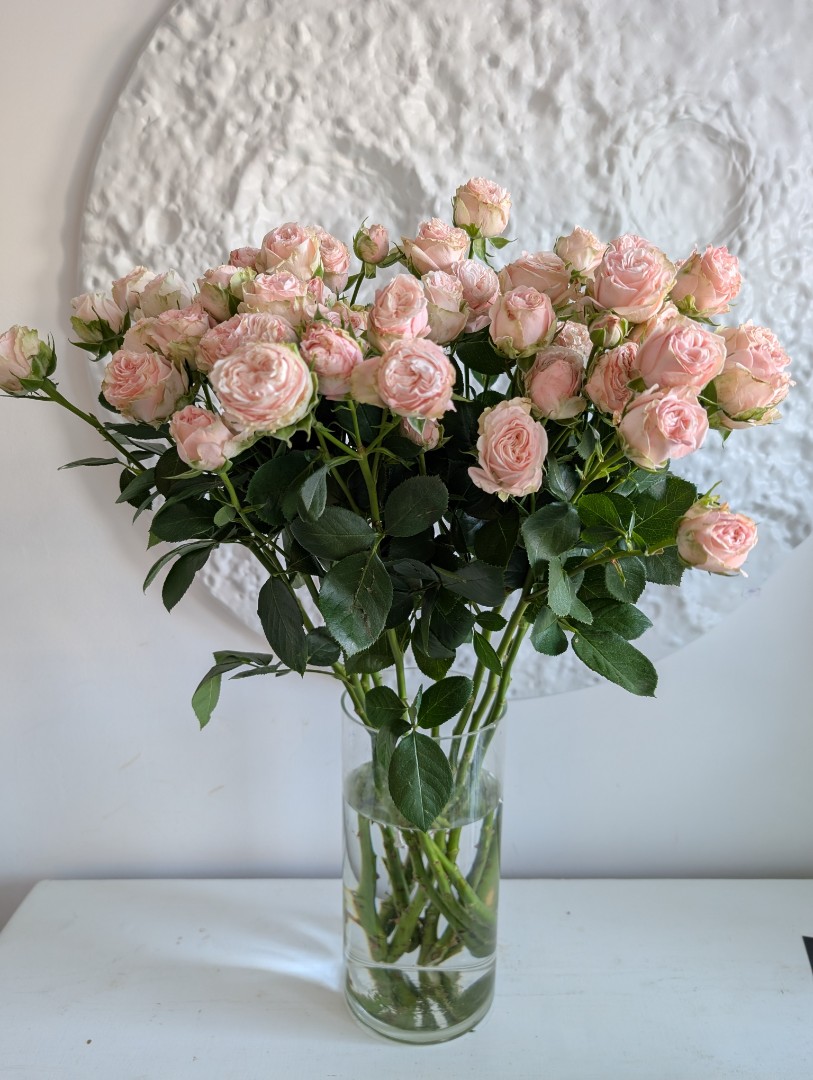 Сделайте косой срез стеблей под углом 45° на 2–3 см острым ножом или секатором. Обновляйте срез при каждой смене воды и регулярно мойте вазу.